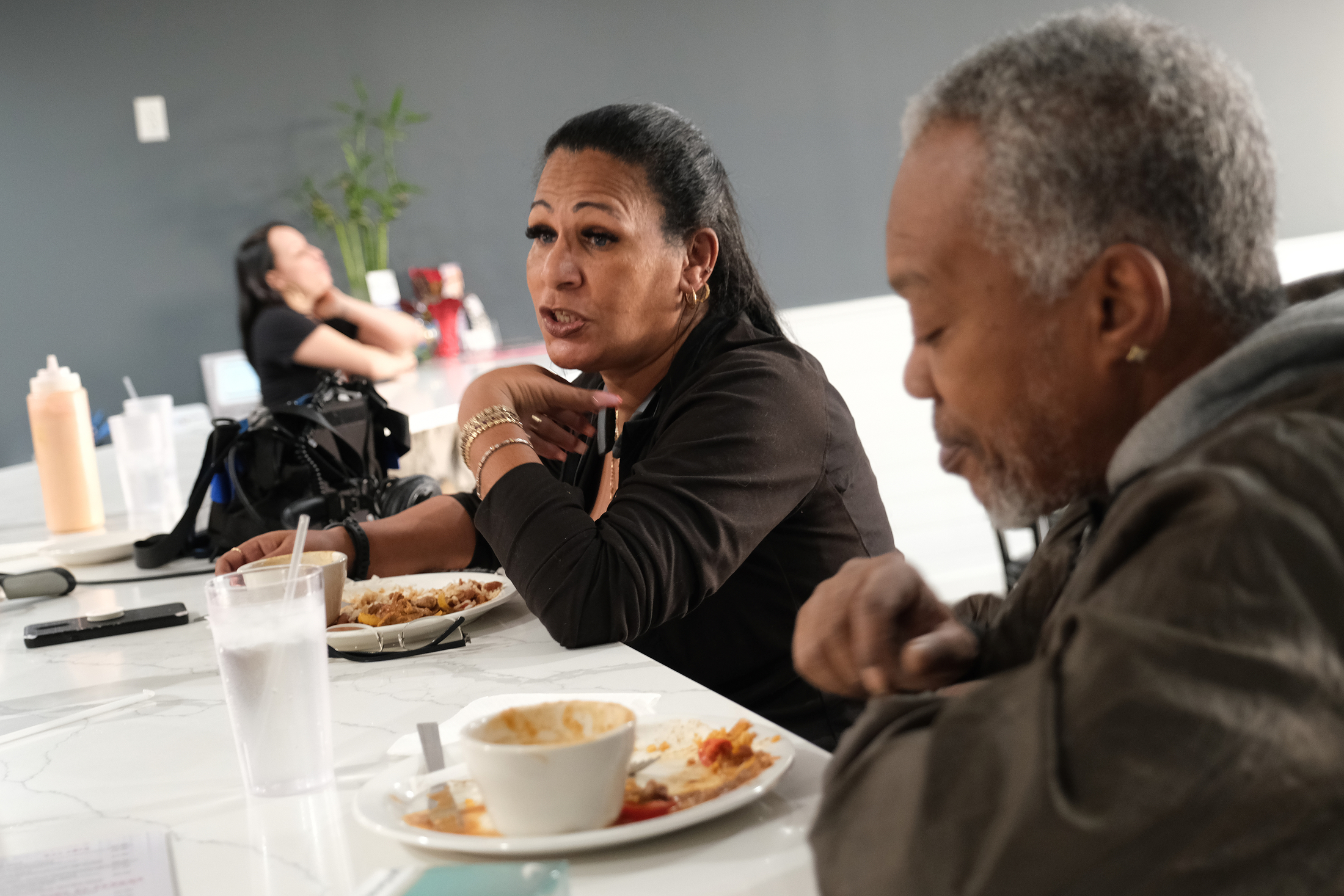 - Iris Batista, left, of Mount Penn, talks while seated next to James Porter, right, on Jan. 15, 2020, at Mi Casa Su Casa in Reading, Pennsylvania.