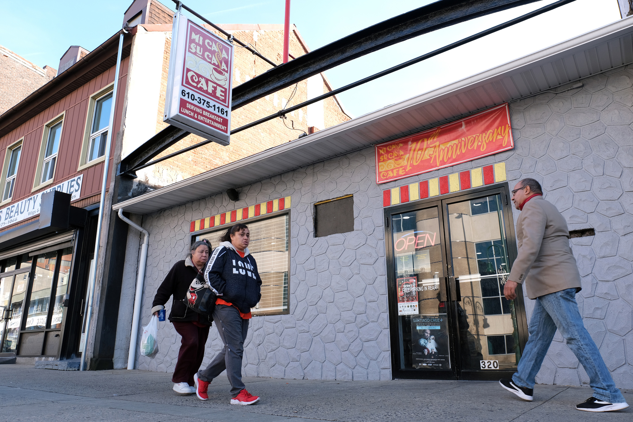 - People walk past Mi Casa Su Casa on Jan. 15, 2020, on Penn Street in Reading, Pennsylvania.