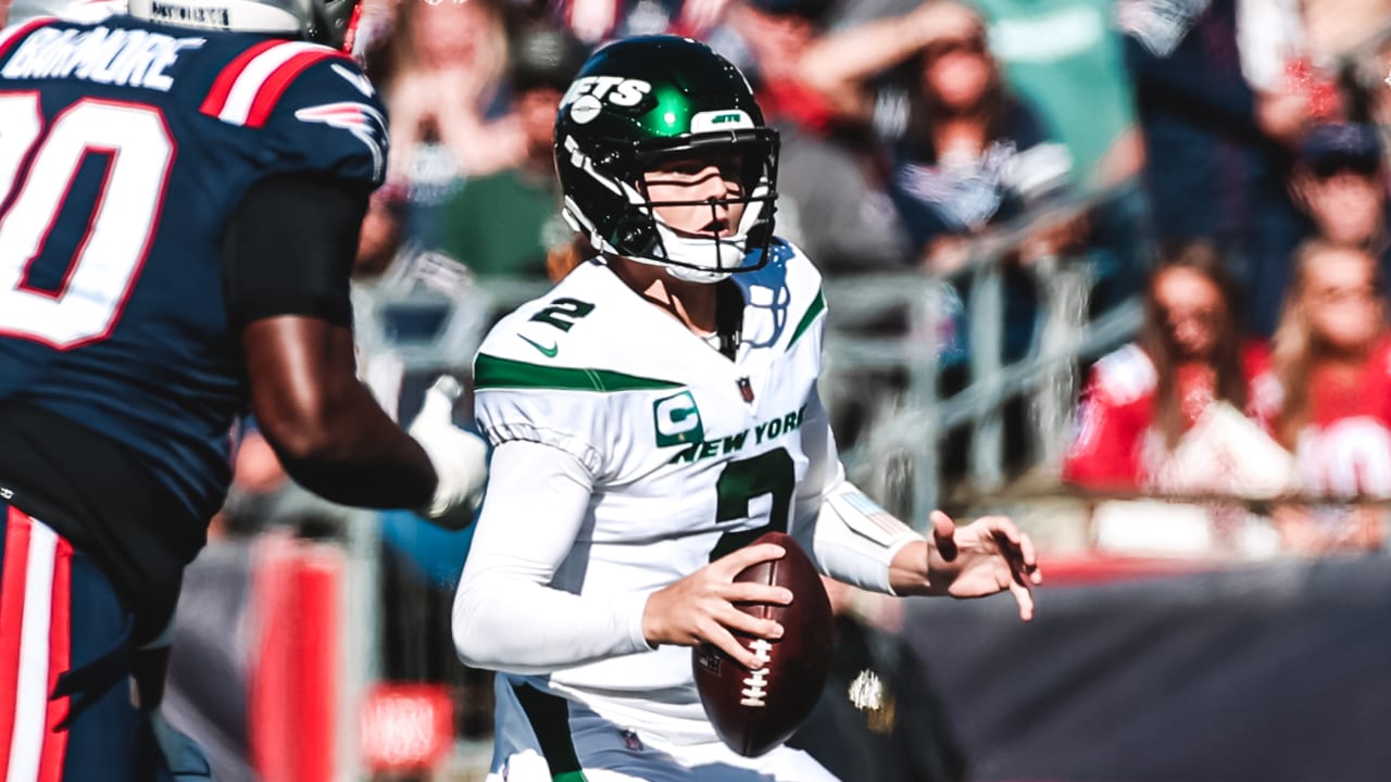 It was the second time on the possession Wilson appeared to be hit late, without a roughing penalty being called. Two plays prior to Judon's hit, Wilson scrambled to the near sideline and dumped the ball out of bounds and was hit low by DT Lawrence Guy. No penalty was called as head coach Robert Saleh voiced his displeasure at the game officials.
